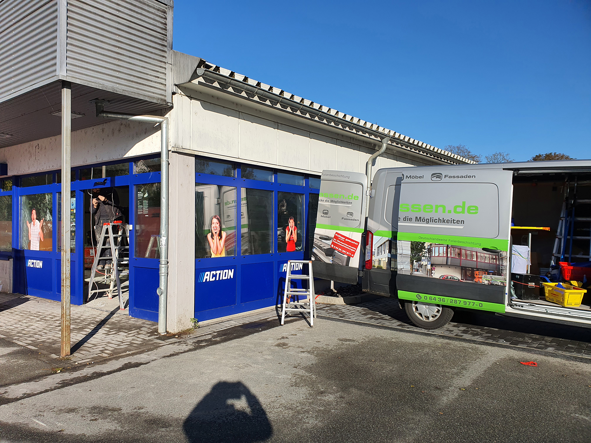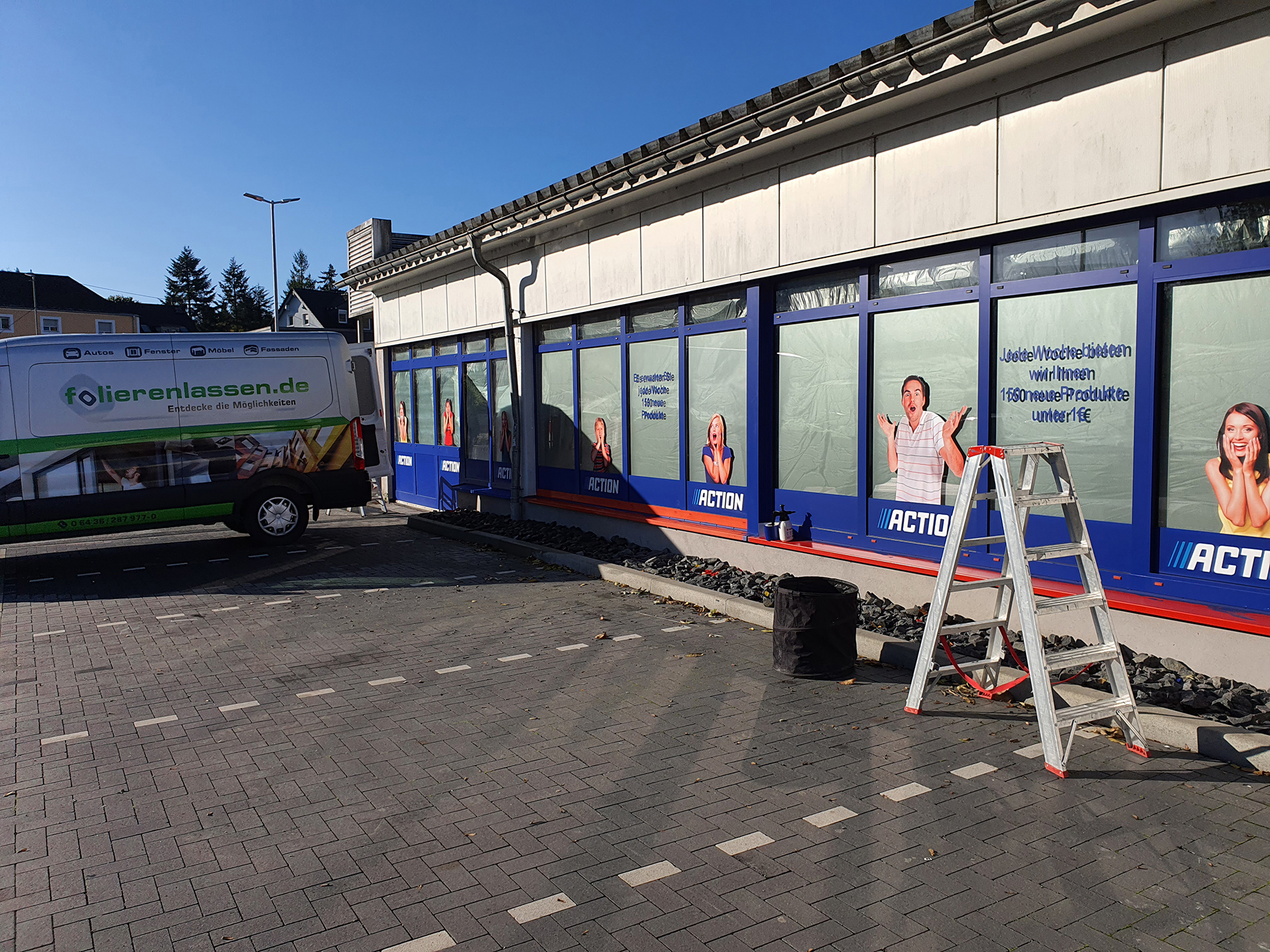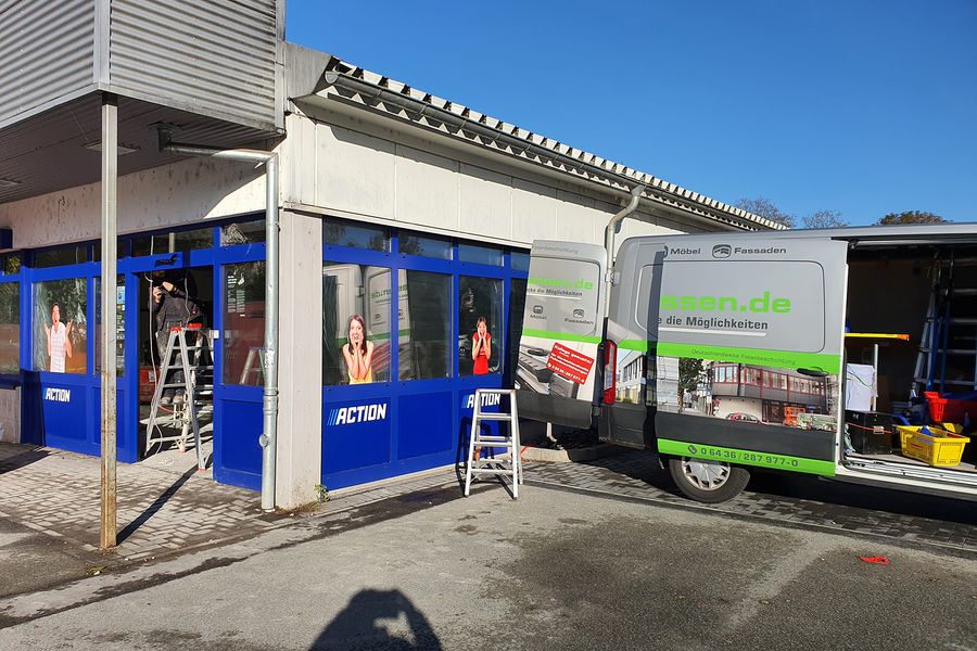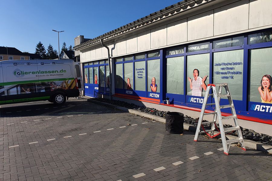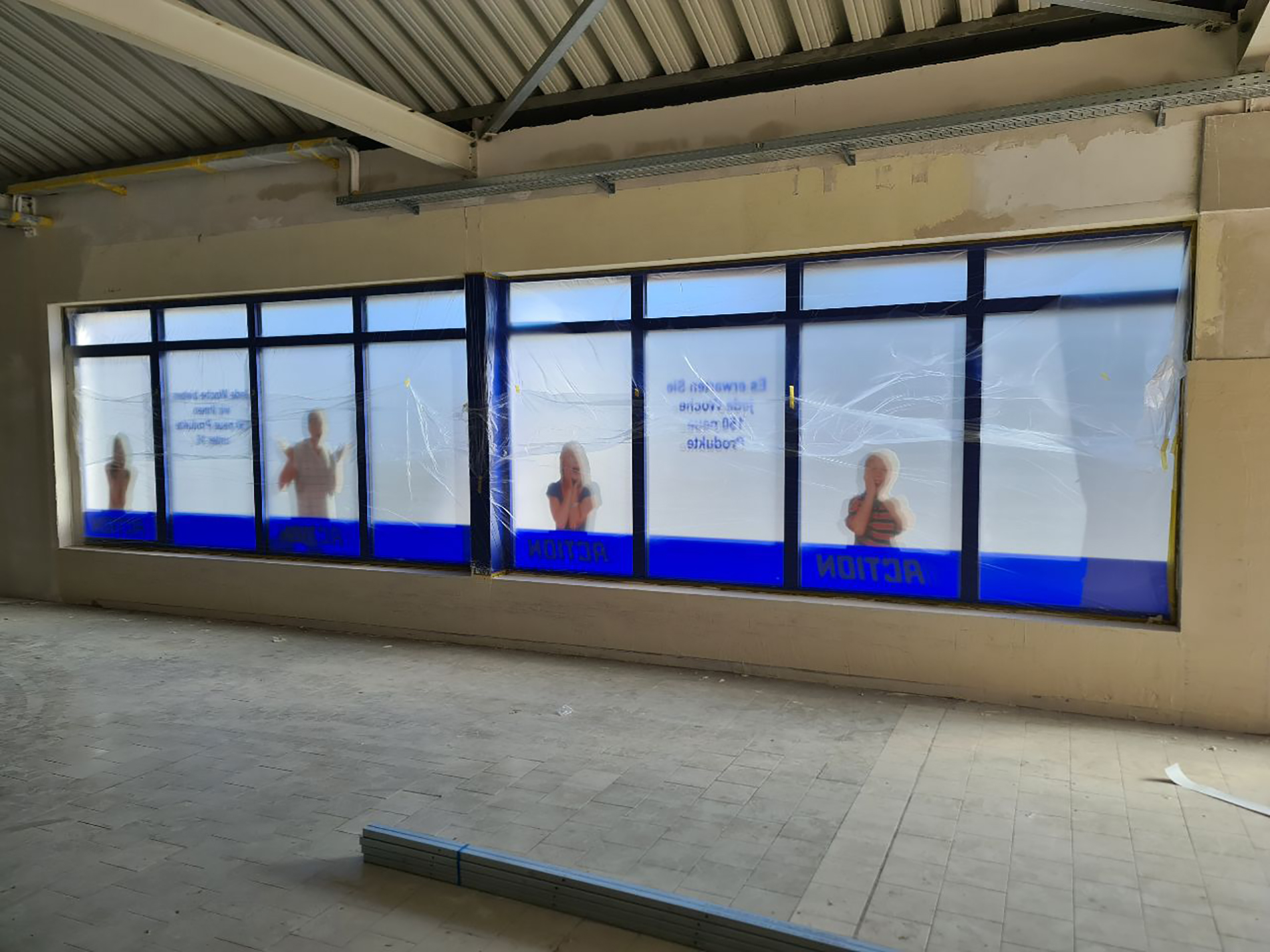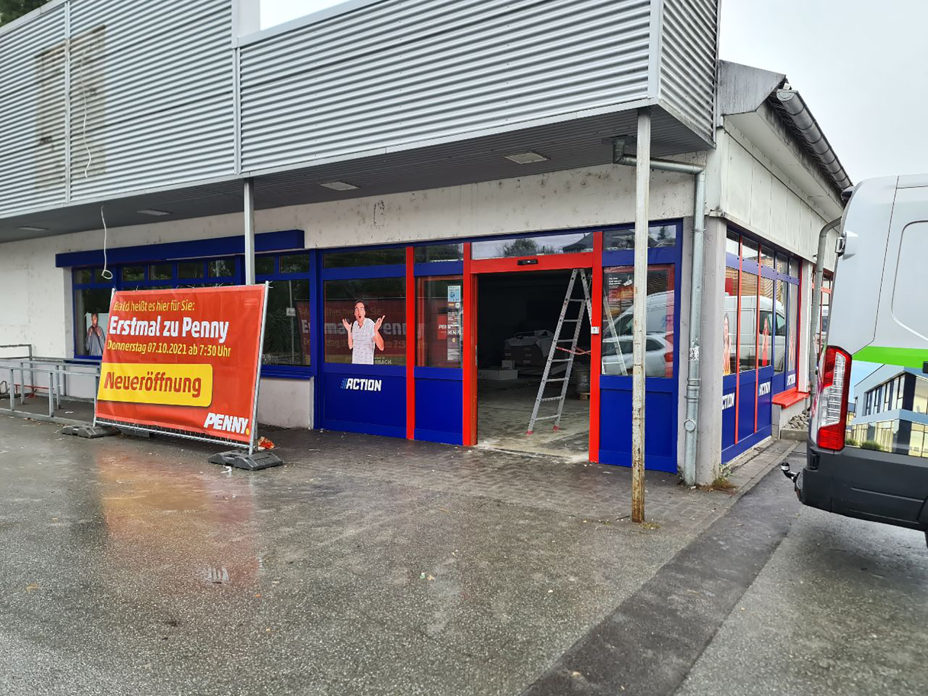 Penny Filiale wird zum Action Markt - Folierung Fenster und Schiebeanlage