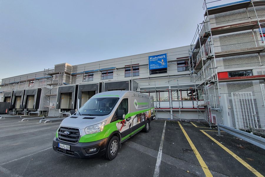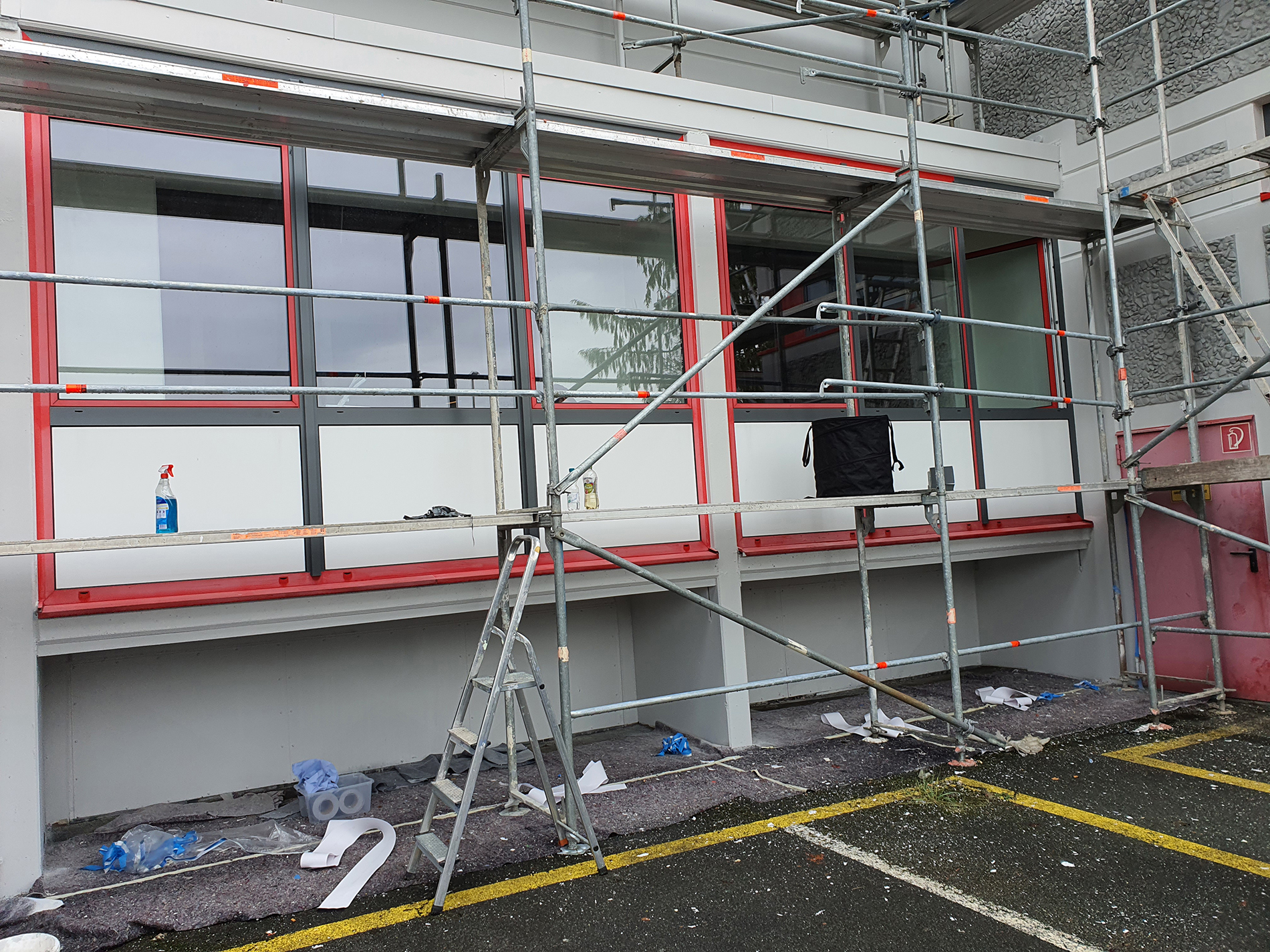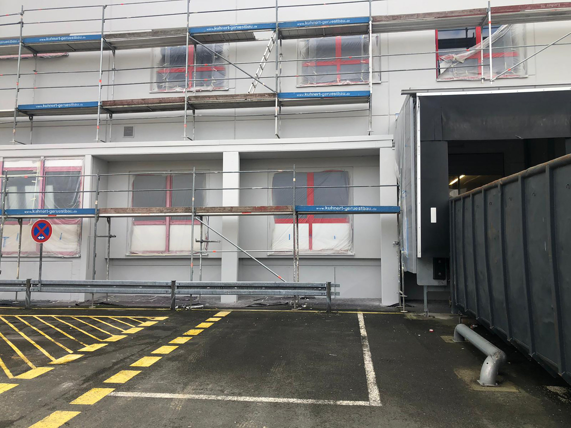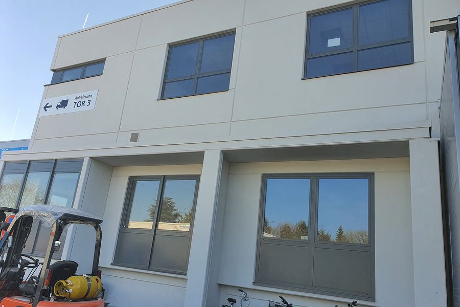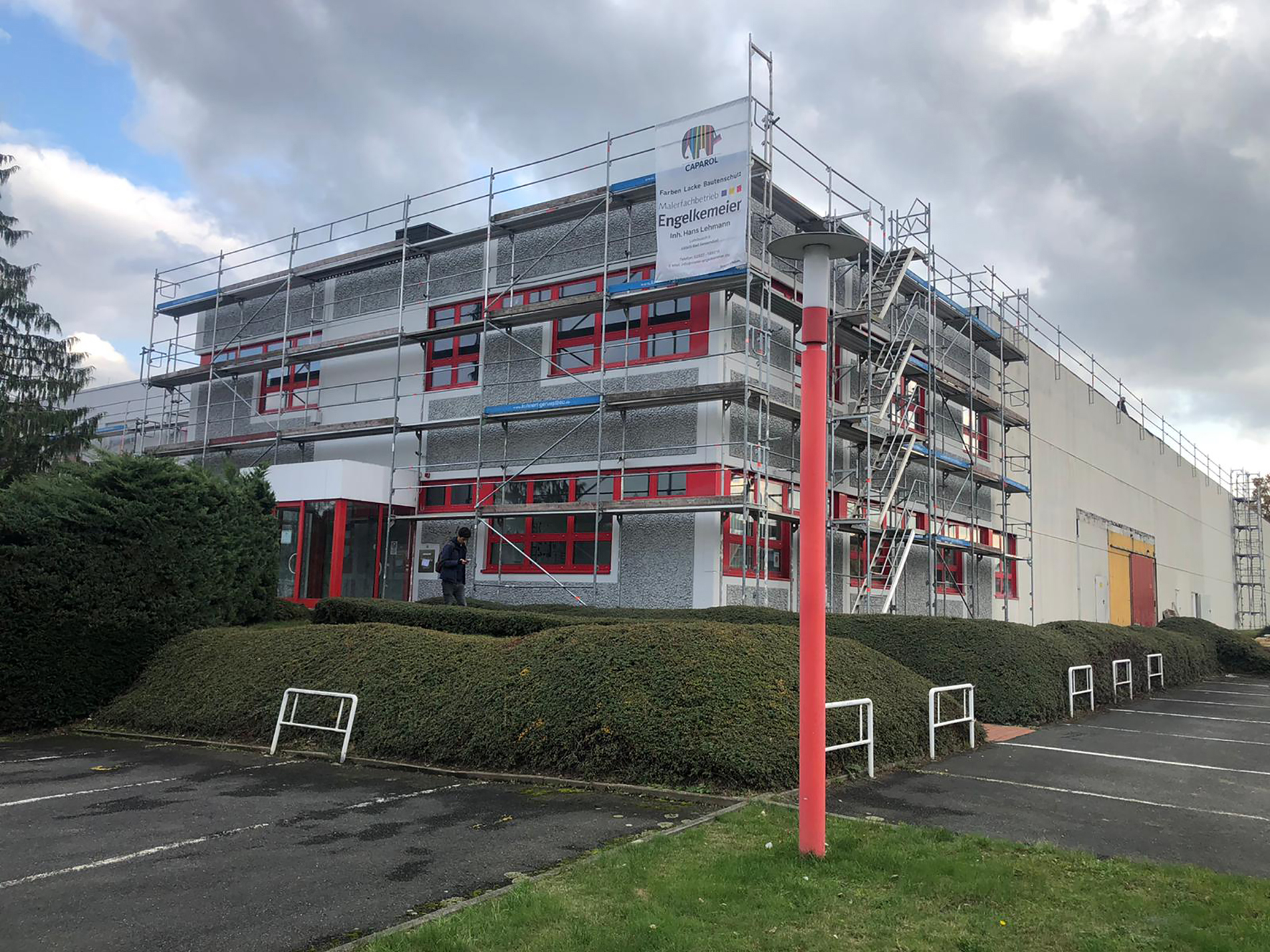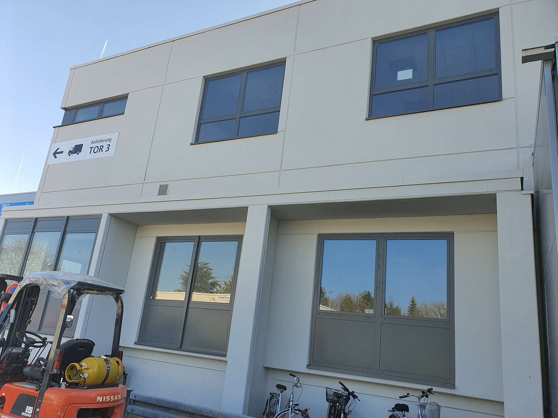 Im Zuge der Erweiterung und Erwerbs einer neuen Immobilie sollte die Fassade modernisiert werden. Neben den Malerarbeiten der Putzfassade sollten auch die Fensterrahmen Innen und Außen farblich angepasst werden. Es sollte eine langanhaltende Lösung her. Somit viel das Lackieren raus, da im Außenbereich nicht lange haltbar. Von Beginn der Planung an standen wir dem Geschäftsführer und Planern zur Seite, Durch die kompetente Beratung, einer Probefolierung im Vorfeld und langjähriger Garantie konnten wir überzeugen. Wir beschichteten alle vorher roten Rahmen in basaltgrau, Innen und Außen. Das Ergebnis kann sich sehen lassen, und dies lange Jahre. Wir wünschen viel Erfolg am neuen Standort!