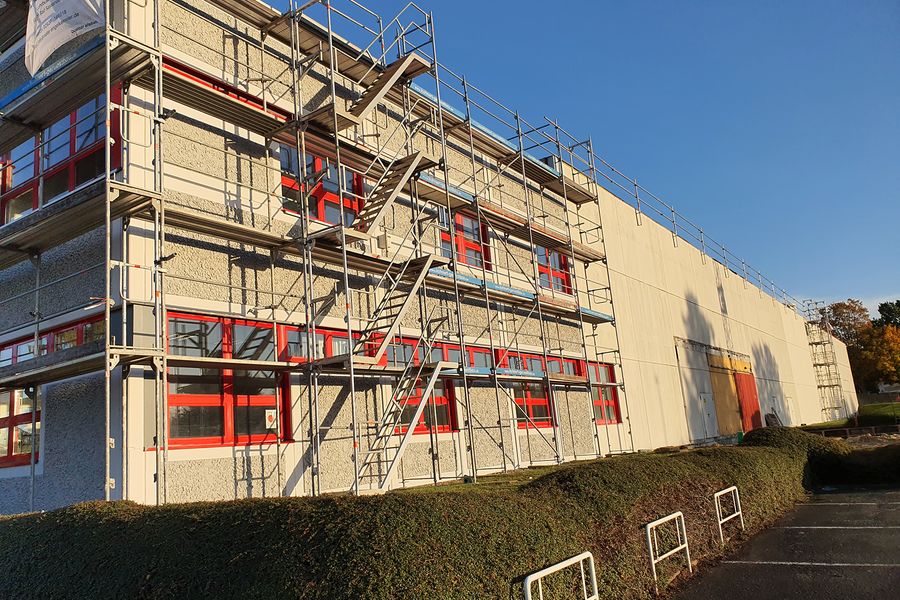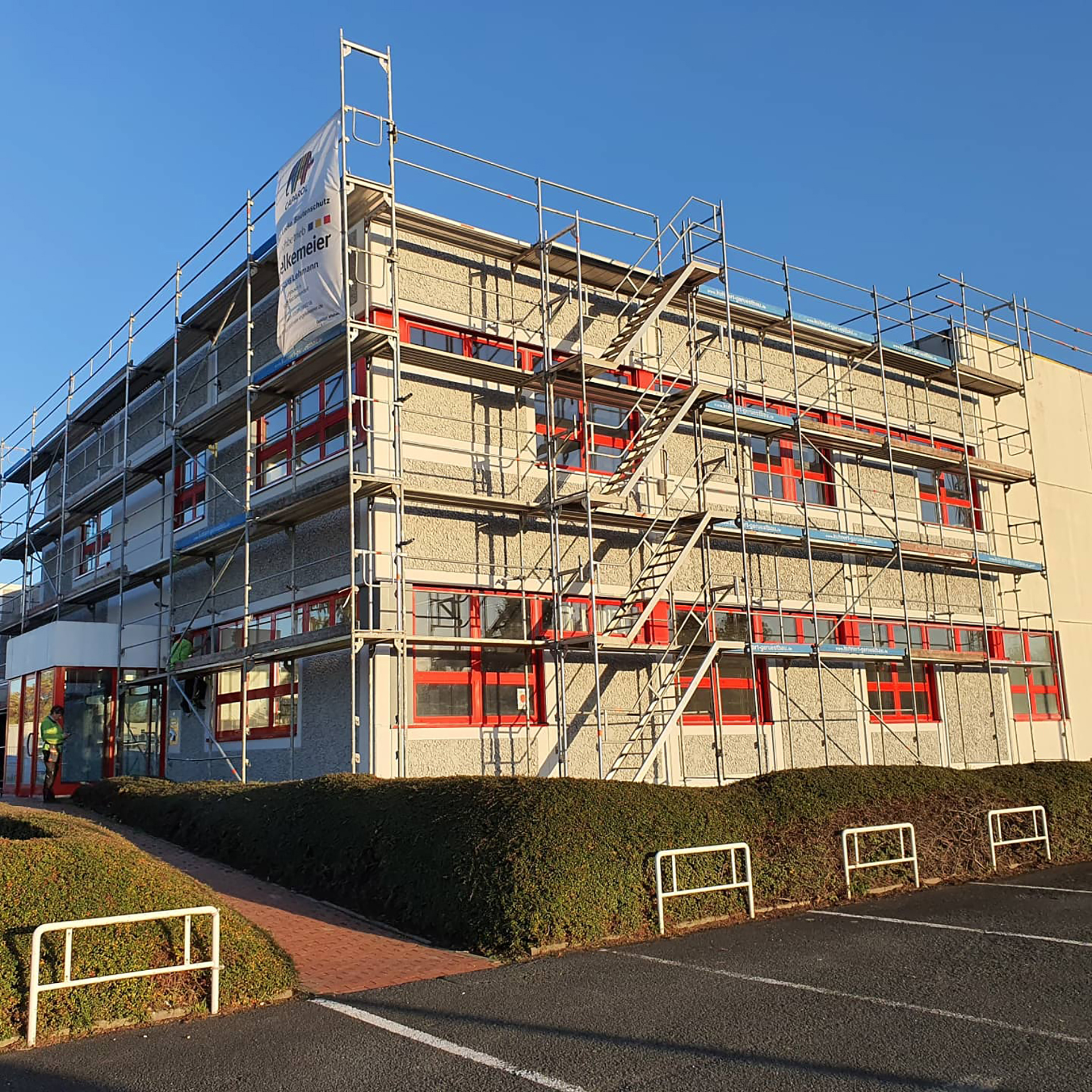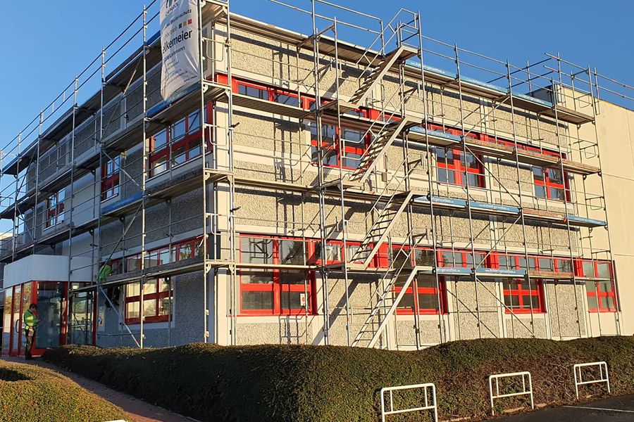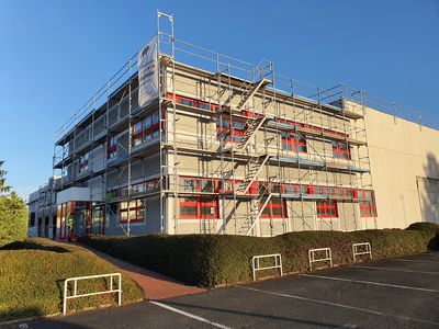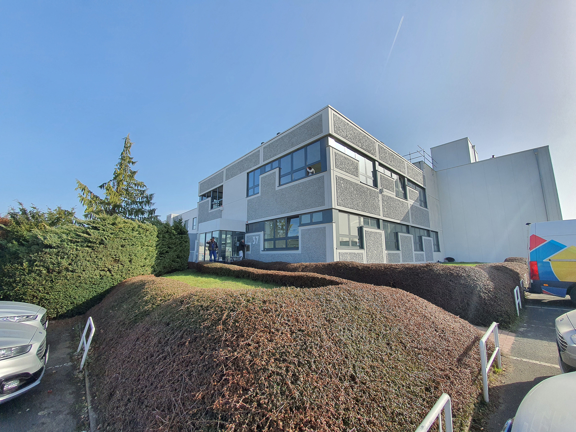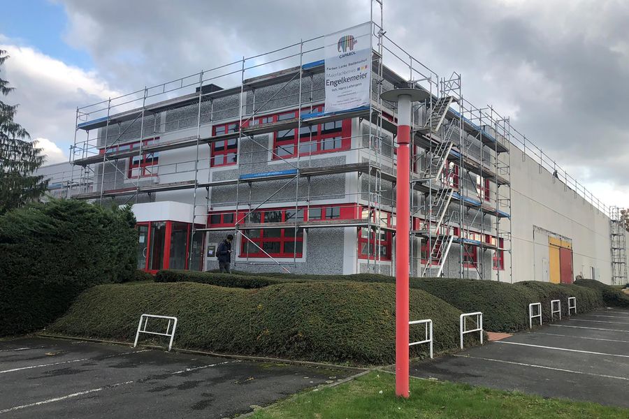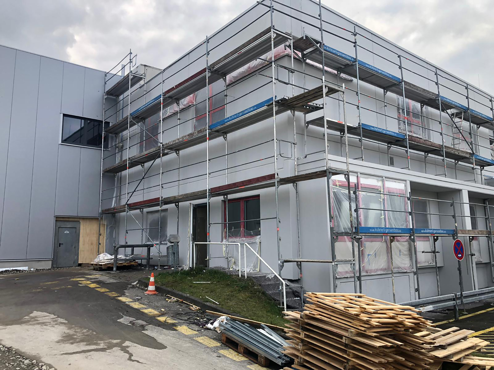 Im Zuge der Erweiterung und Erwerbs einer neuen Immobilie sollte die Fassade modernisiert werden. Neben den Malerarbeiten der Putzfassade sollten auch die Fensterrahmen Innen und Außen farblich angepasst werden. Es sollte eine langanhaltende Lösung her. Somit viel das Lackieren raus, da im Außenbereich nicht lange haltbar. Von Beginn der Planung an standen wir dem Geschäftsführer und Planern zur Seite, Durch die kompetente Beratung, einer Probefolierung im Vorfeld und langjähriger Garantie konnten wir überzeugen. Wir beschichteten alle vorher roten Rahmen in basaltgrau, Innen und Außen. Das Ergebnis kann sich sehen lassen, und dies lange Jahre. Wir wünschen viel Erfolg am neuen Standort!
