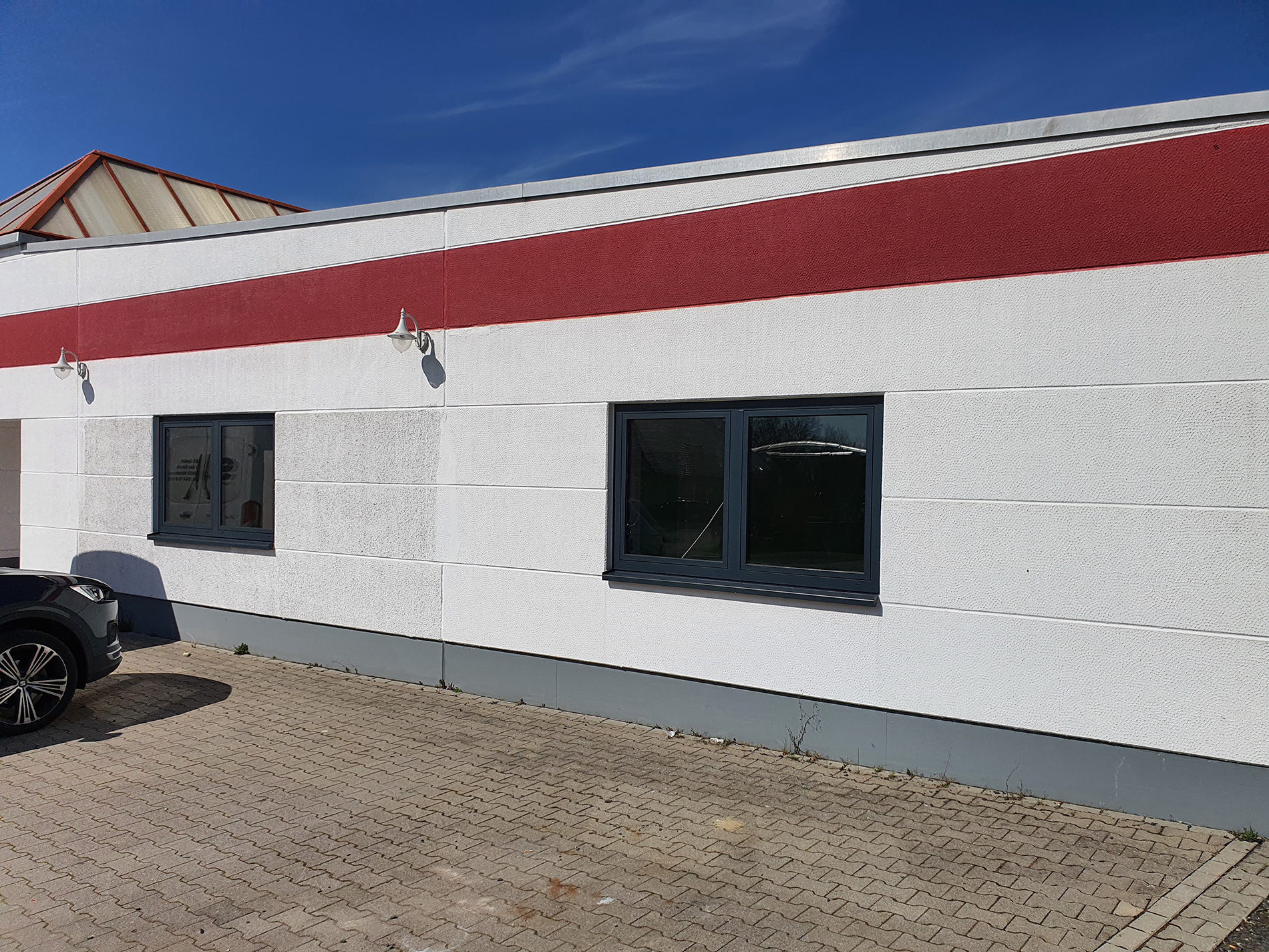 Auch in Waldbrunn Fussingen wurden diese Elemente gemäß der neuen Optik des Gebäudes in anthrazit foliert. Innen wie Außen. So lassen sich Gebäudefassaden, Fensterrahmen, Türen und Tore kostengünstig revitalisieren, modernisieren, renovieren und auffrischen.