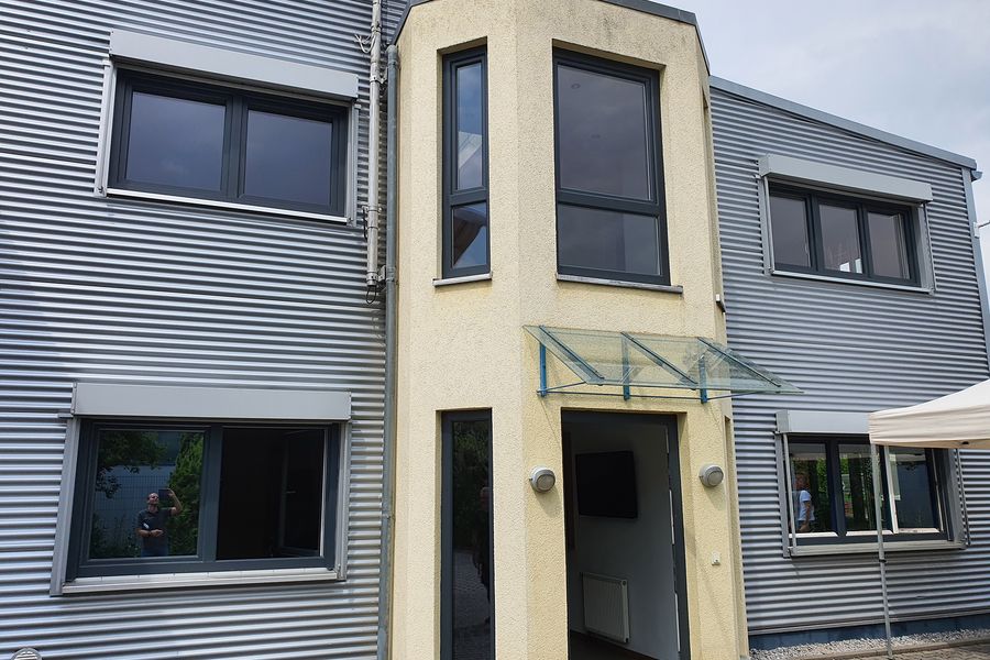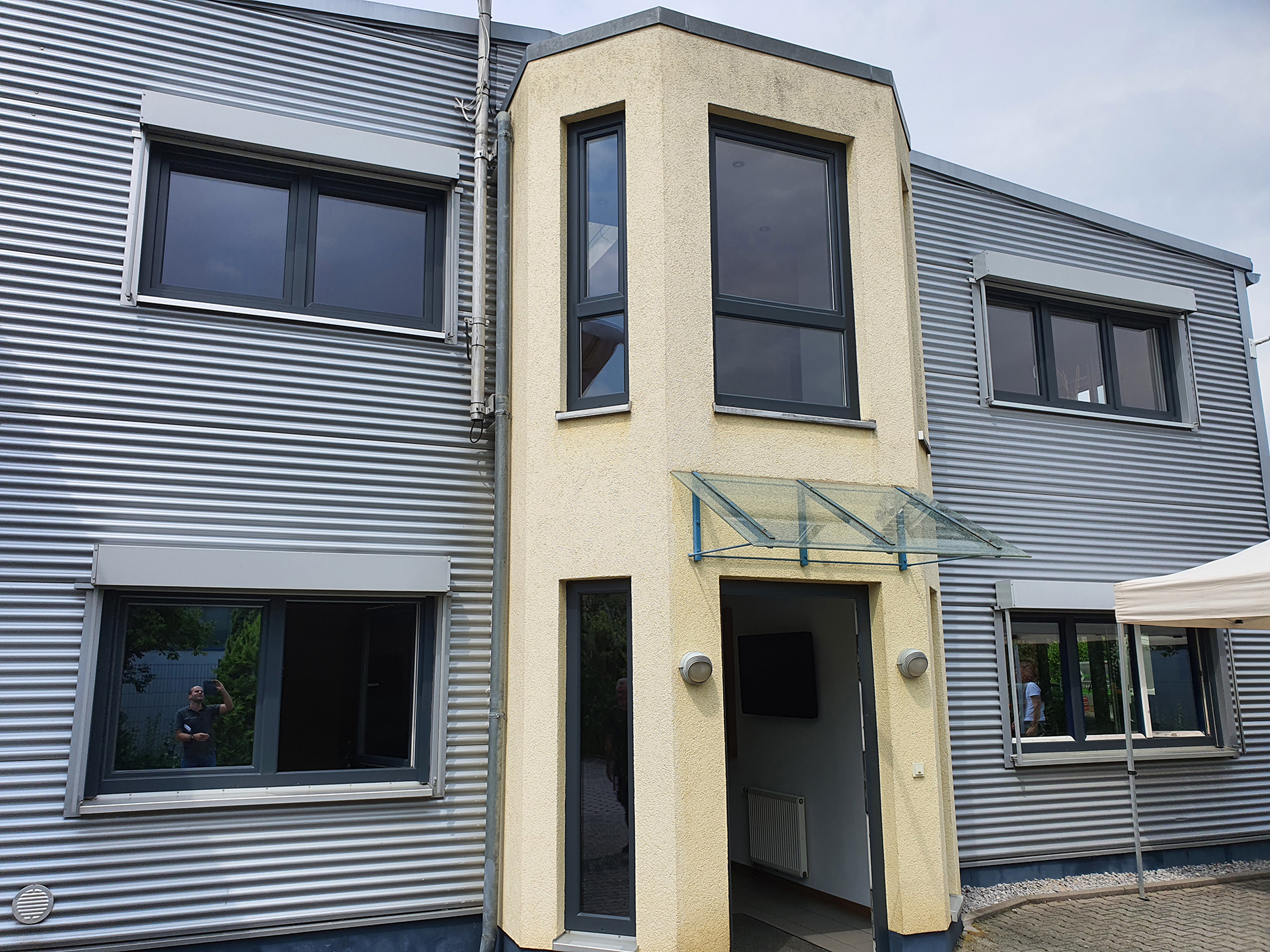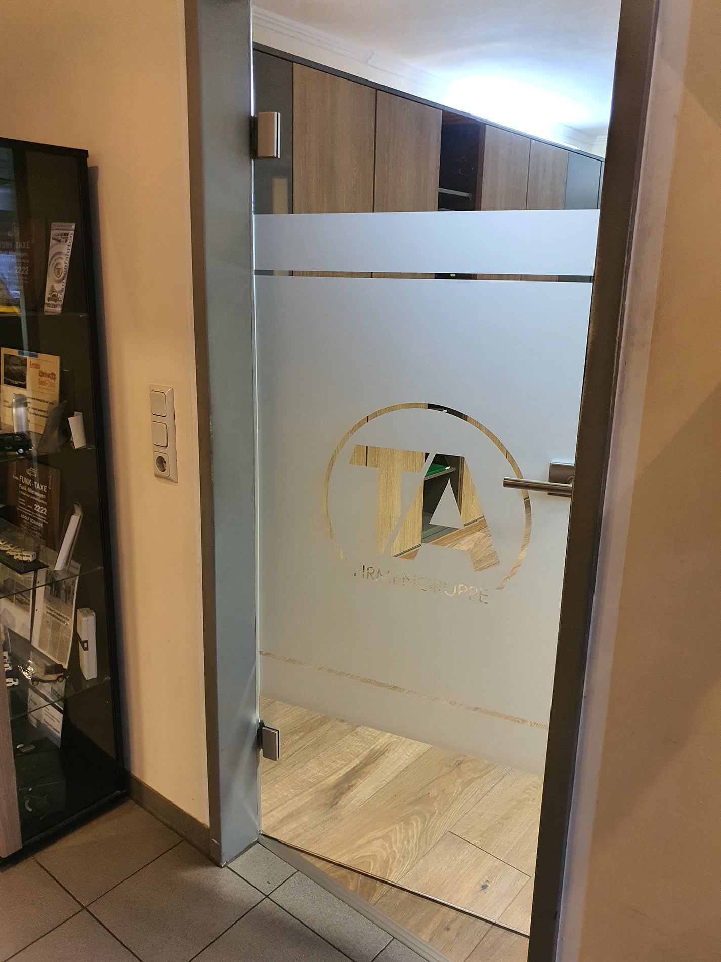 Die Fenster und Tore waren mit der Zeit in die Jahre gekommen. Gerade an den südlich ausgerichteten Bereichen sind die Fensterrahmen verblasst und die ursprüngliche Folierung löste sich an den unteren Profilen. Gewünscht wurde im Zuge der Revitalisierung nicht nur die Wiederherstellung der verwitterten Farben. Ein neues Farbkonzept konnten wir dank der vielfältigen Folienauswahl gleichzeitig umsetzen. Somit wurden alle Fenster, Tore und Sockelbereiche im Farbton Anthrazitgrau RAL 7016 neu beschichtet / foliert. Jedoch musste die Oberfläche der verwitterten Profile erst instandgesetzt werden. Wir erledigten dies aus einer Hand. Unsere erfahrenen Monteure wussten was zu tun war. Gleichzeitig übernahmen wir auch im Innenbereich die Neugestaltung des Interieurs der Zentrale sowie eine Neufolierung der Glas und Holztüren. Hier durften wir das gesamte Team der TA-Firmengruppe mit unseren vielfältigen Folienlösungen begeistern und zeigen was sich mit hochwertigen Folien neu gestalten bzw. renovieren lässt. Vielen Dank für den Auftrag!