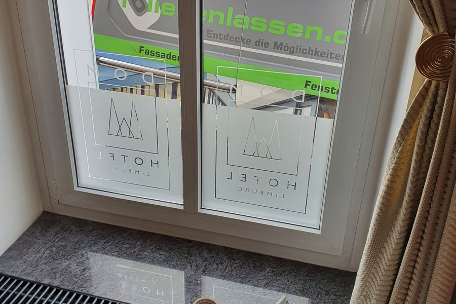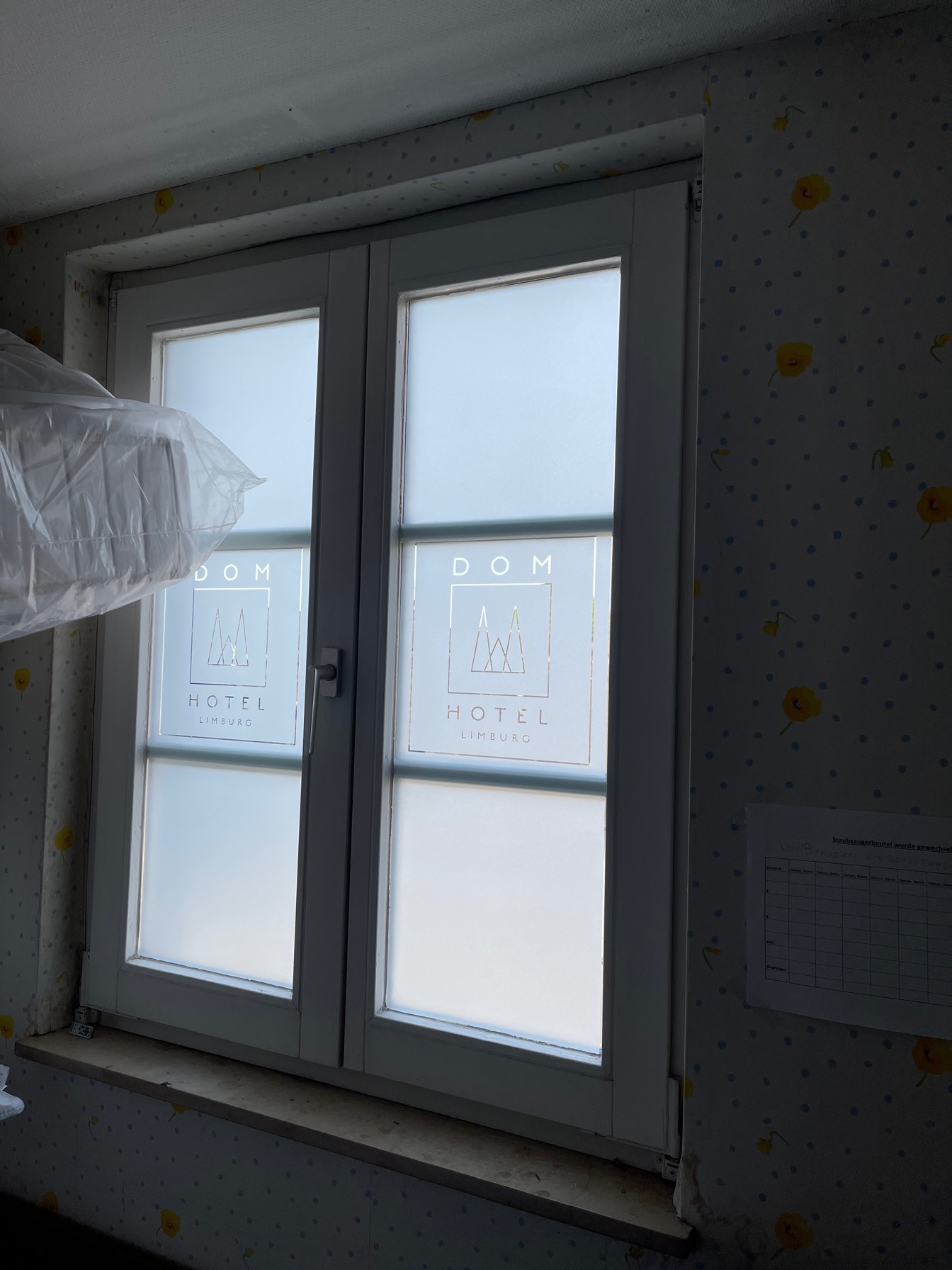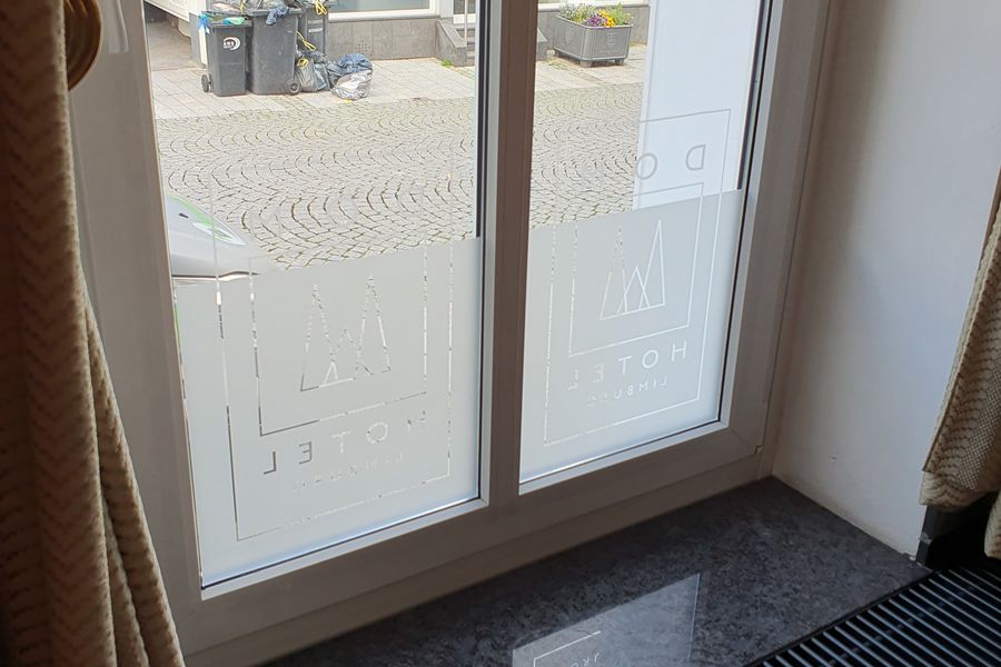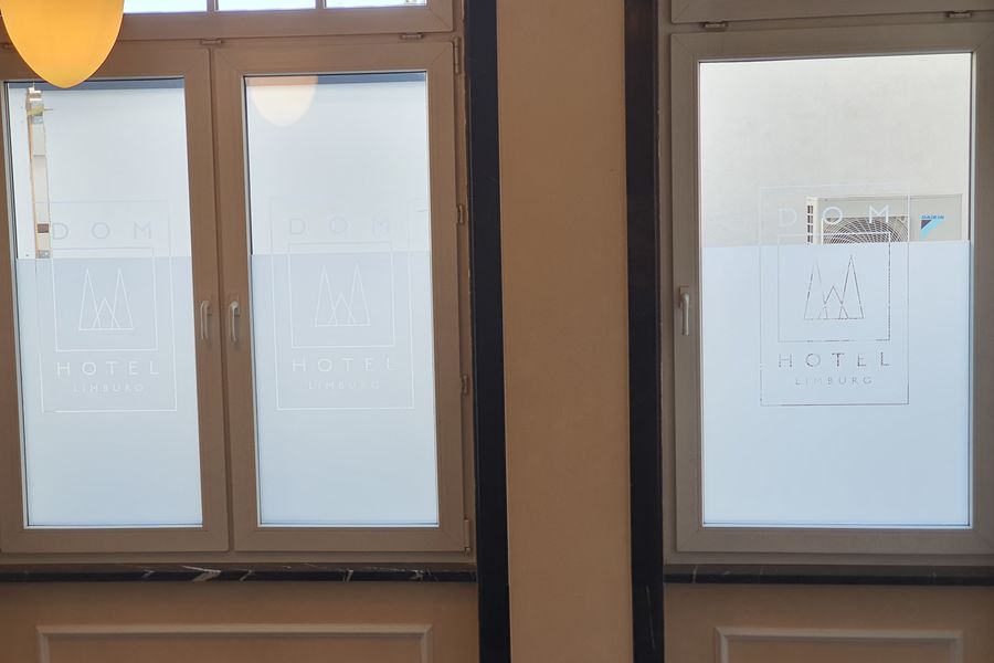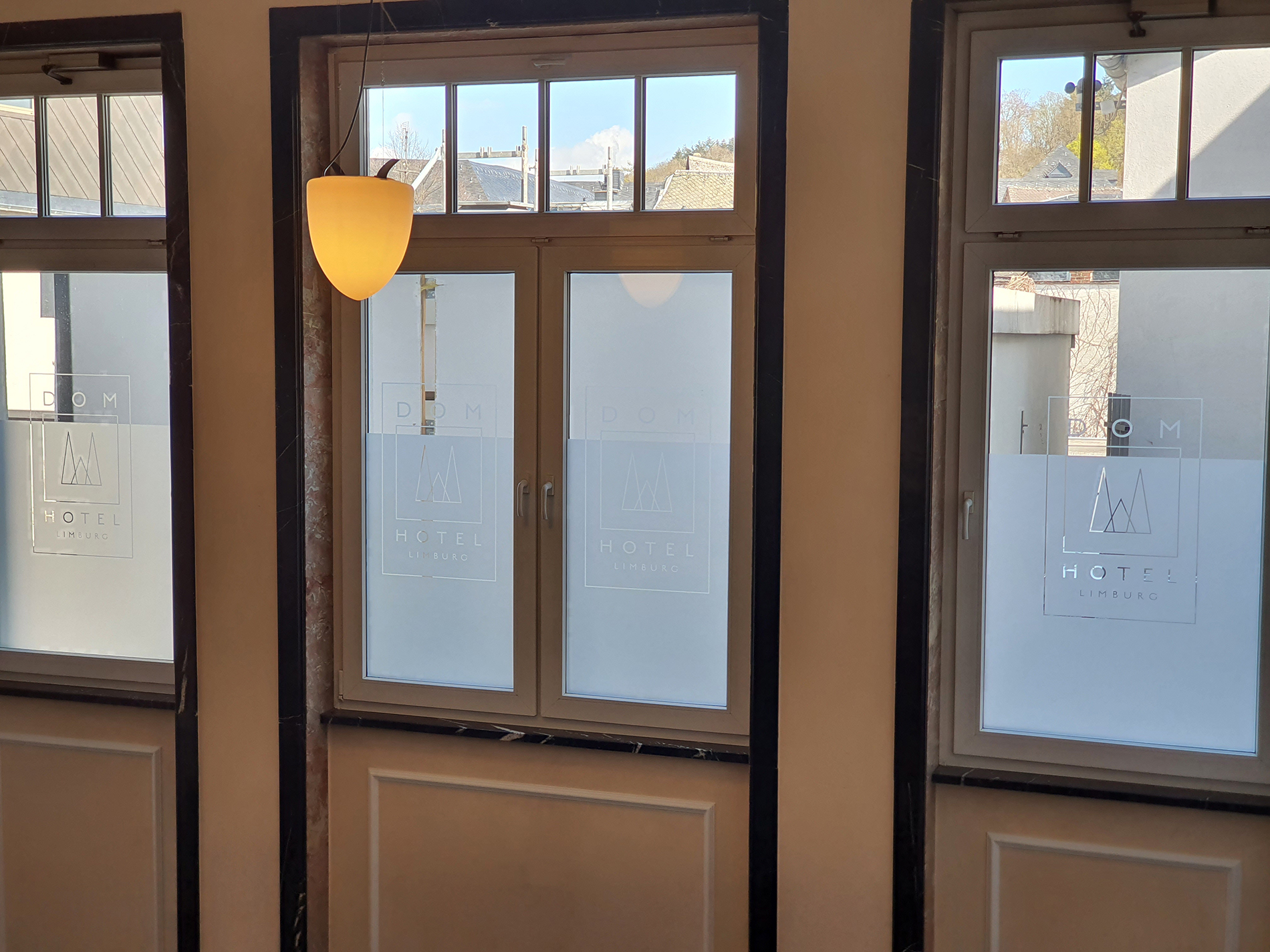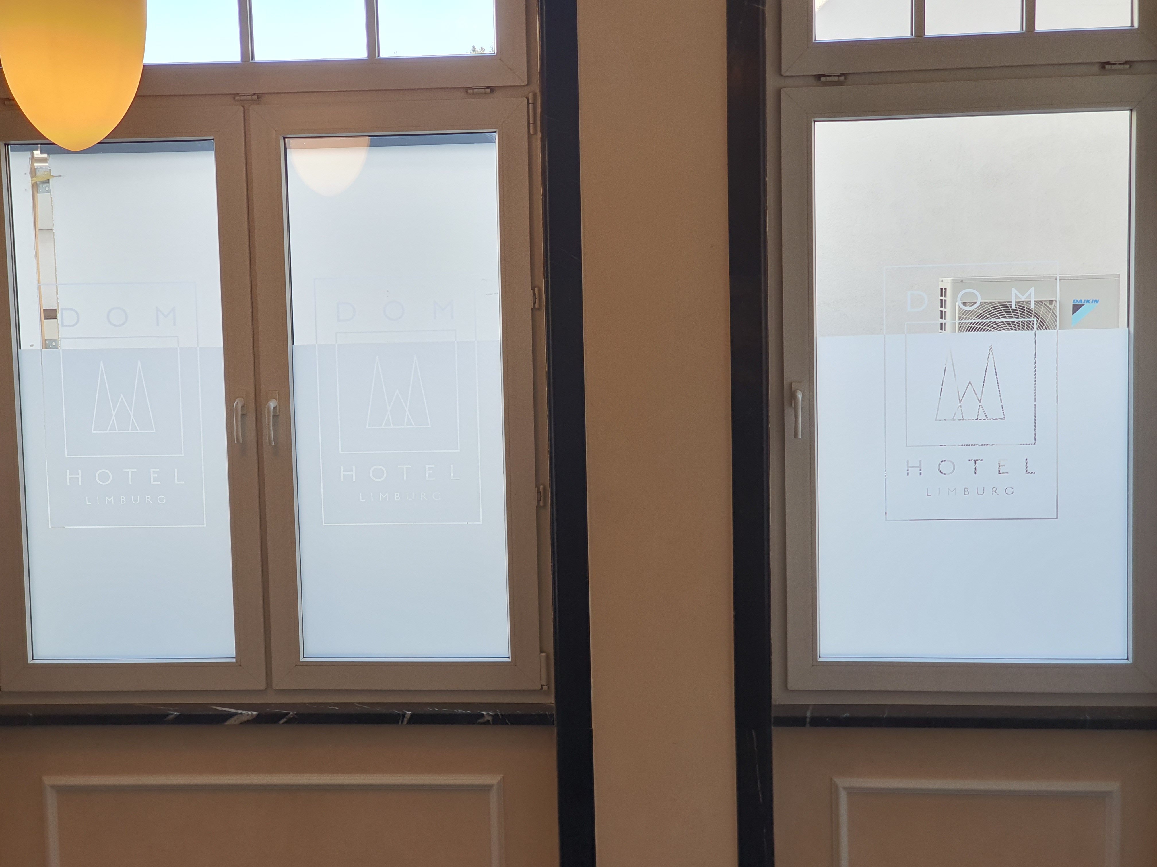 Individuell produziert, für jedes einzelne Maß. Glasdekorfolien sind bedruckbar und plotbar, mit Ihrem Wunschmotiv, Text oder Logo. Hier wurde die Glasdekorfolie in Hotelzimmern, an Eingangs- sowie Durchgangsbereiche angebracht. Eine schöne Lösung, denn man "schlägt zwei Fliegen mit einer Klappe". Edle Optik sowie Sicht- und Blickschutz.
