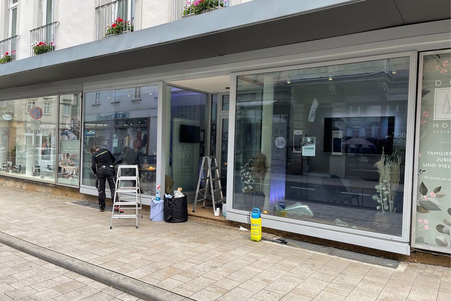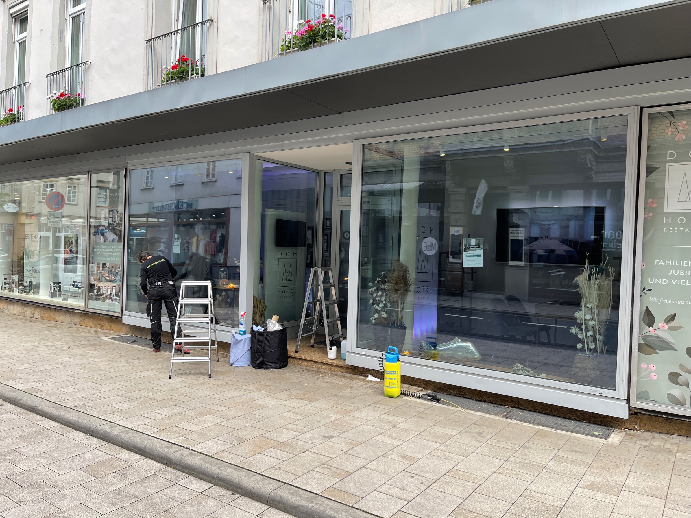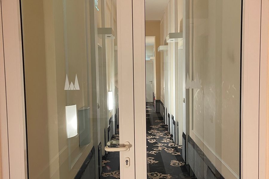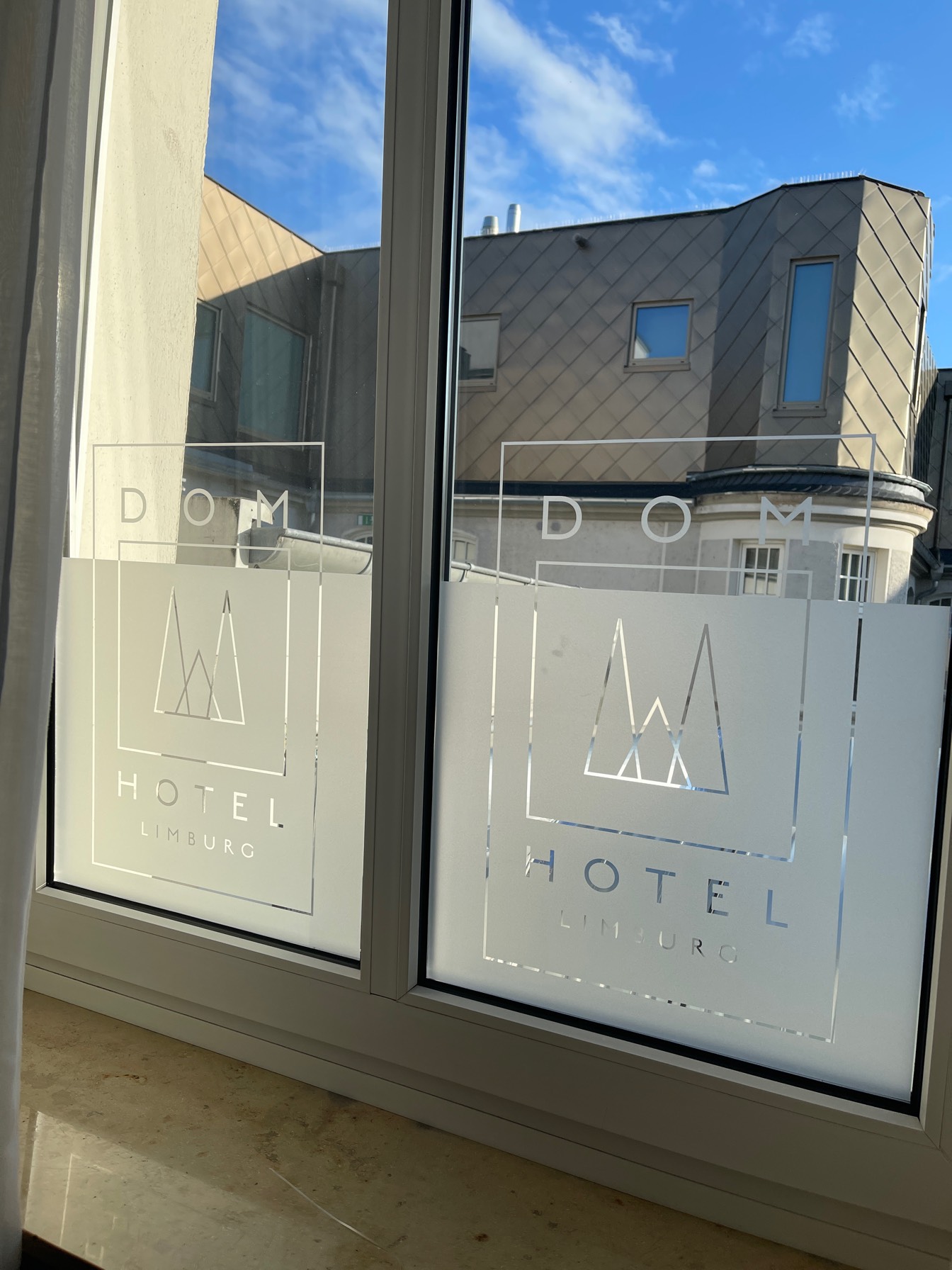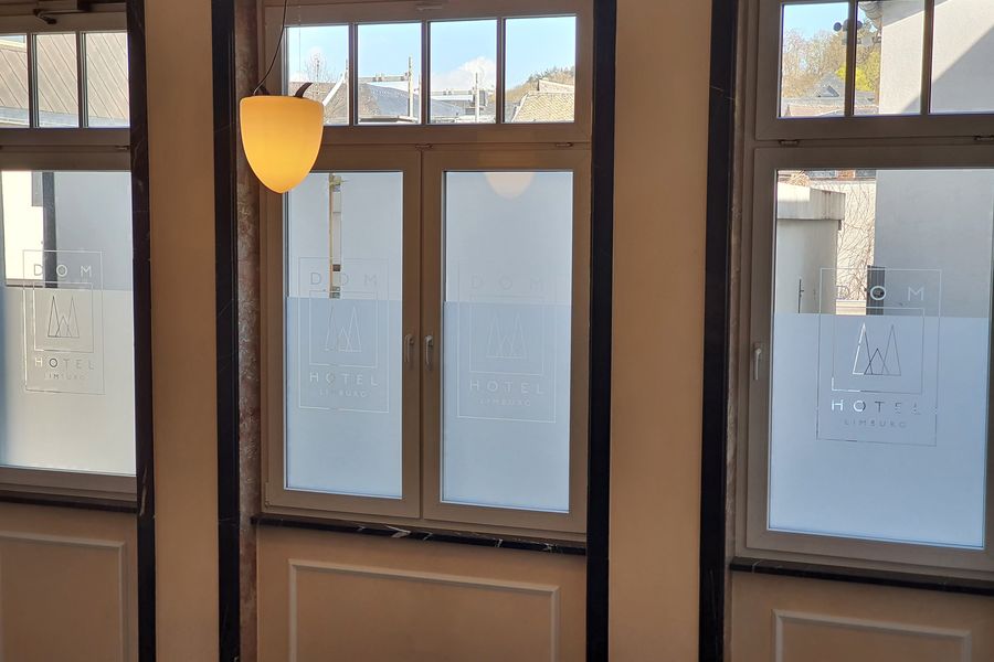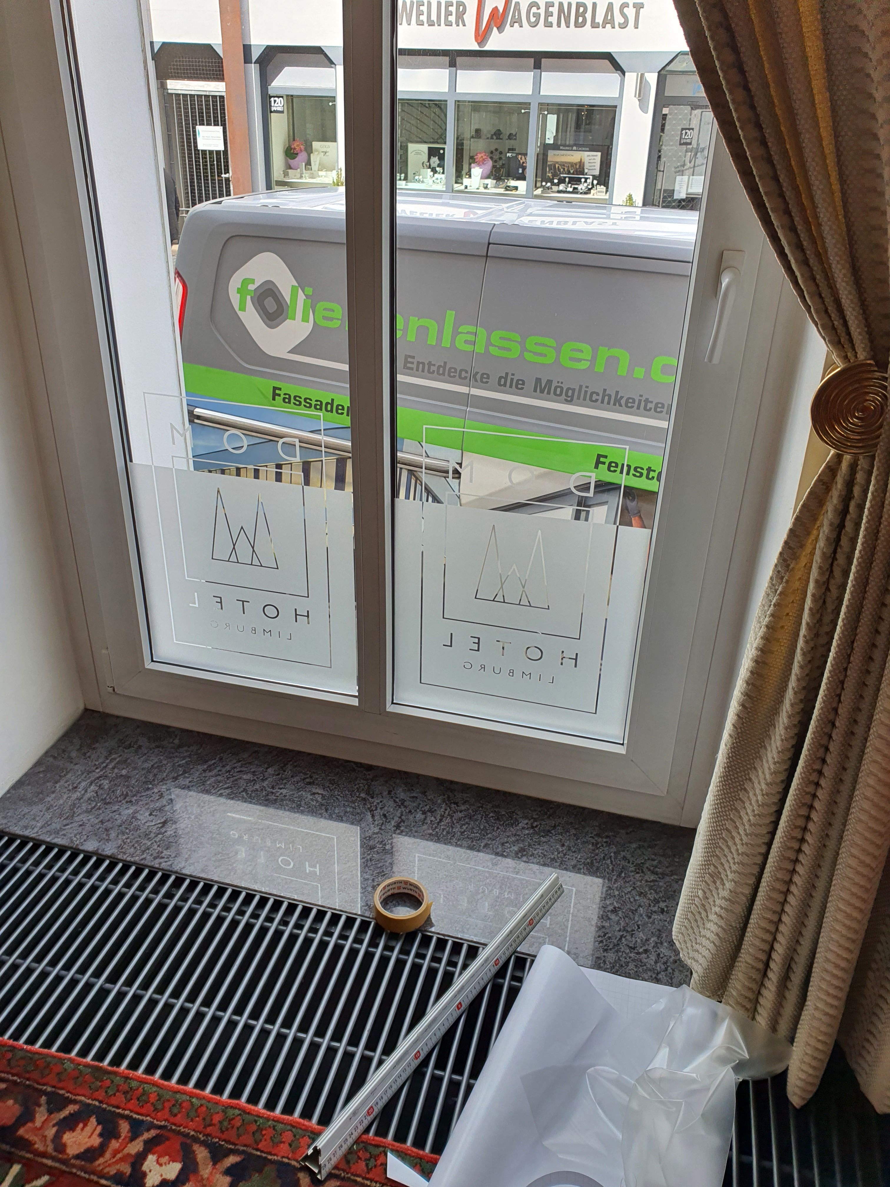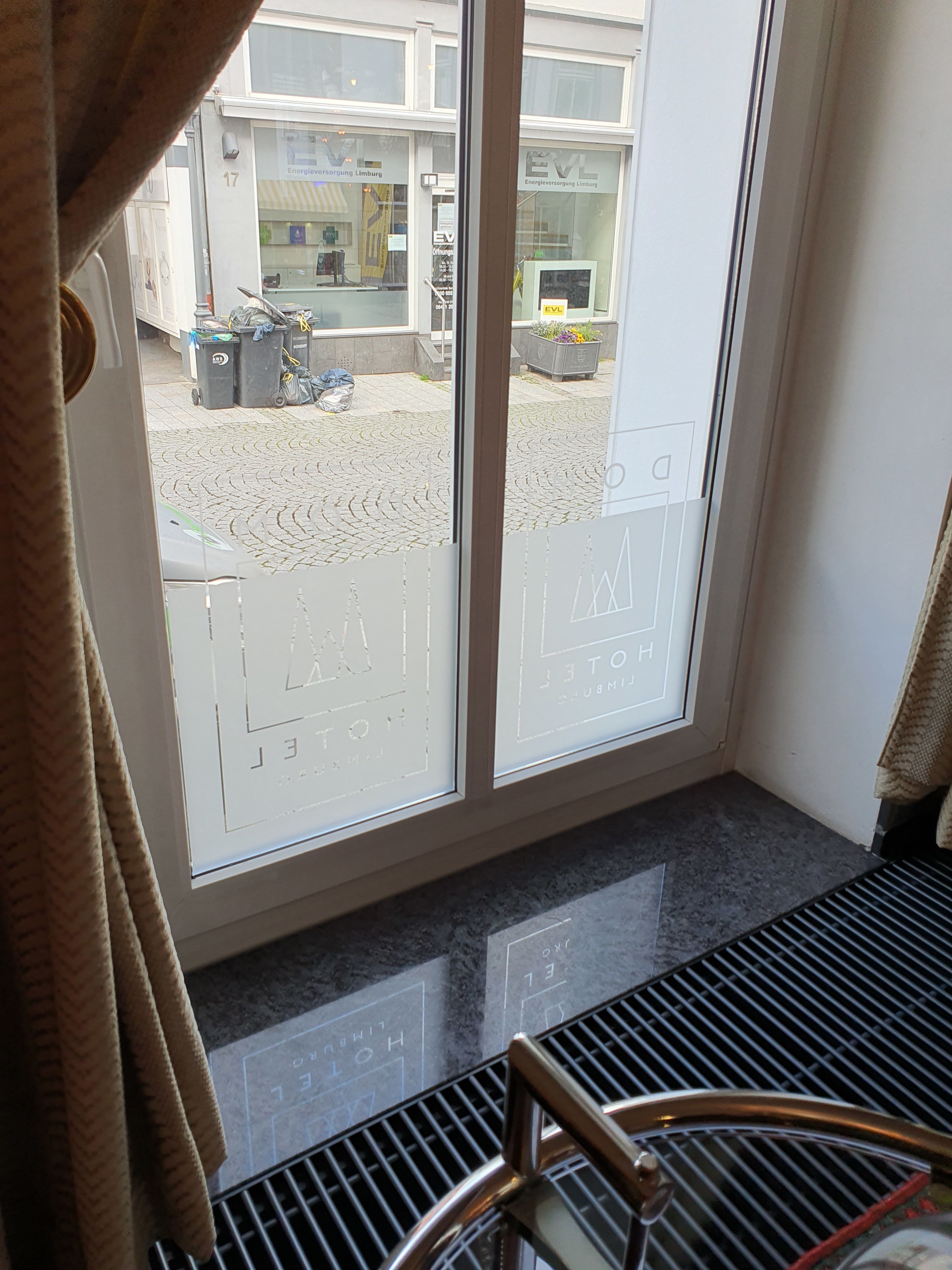 Individuell produziert, für jedes einzelne Maß. Glasdekorfolien sind bedruckbar und plotbar, mit Ihrem Wunschmotiv, Text oder Logo. Hier wurde die Glasdekorfolie in Hotelzimmern, an Eingangs- sowie Durchgangsbereiche angebracht. Eine schöne Lösung, denn man "schlägt zwei Fliegen mit einer Klappe". Edle Optik sowie Sicht- und Blickschutz.