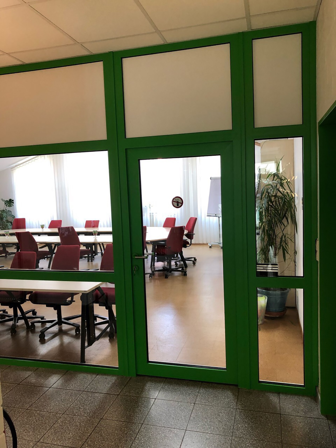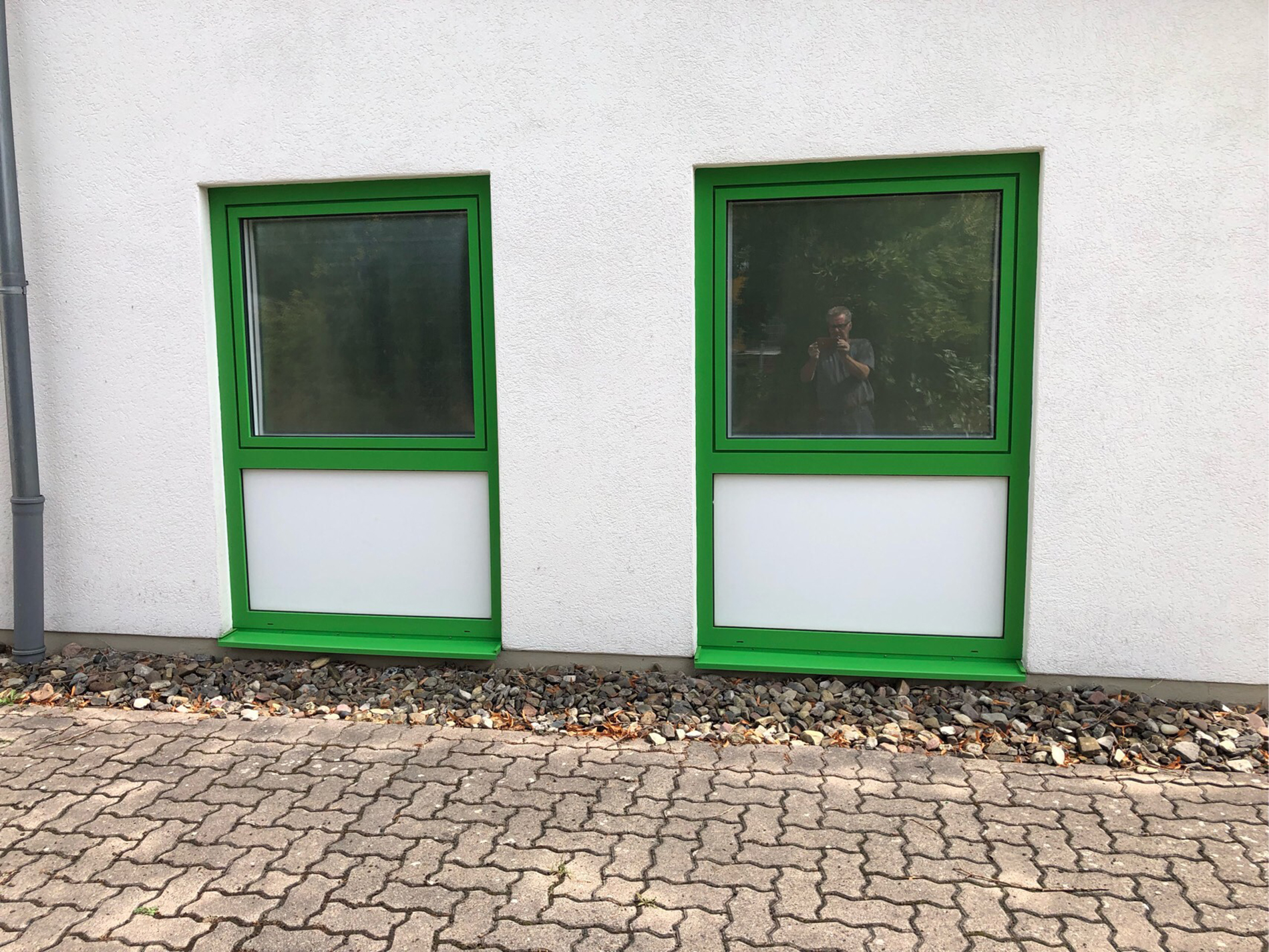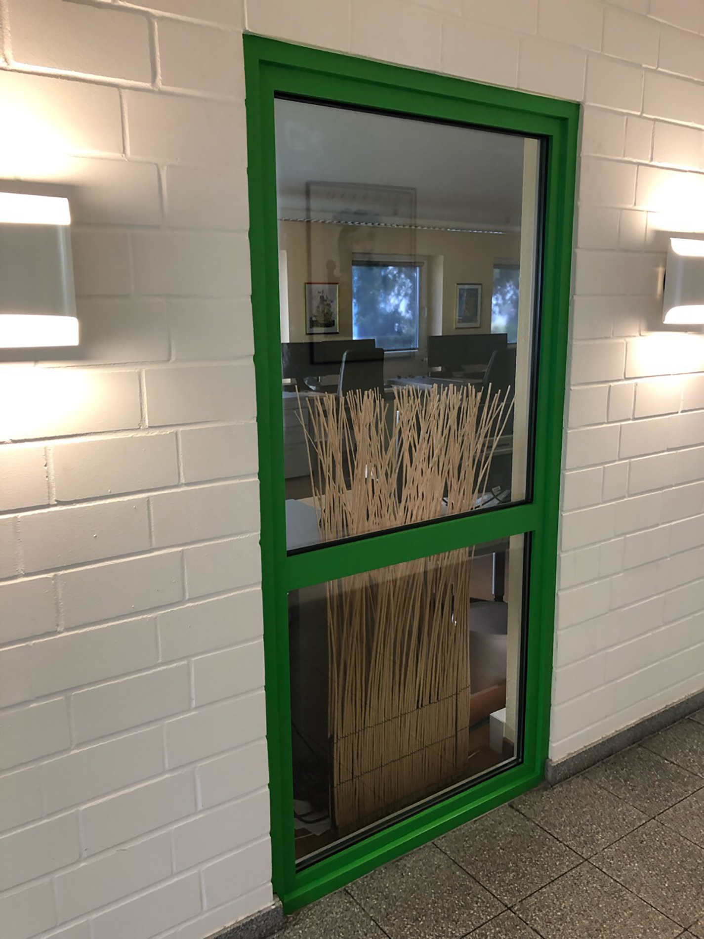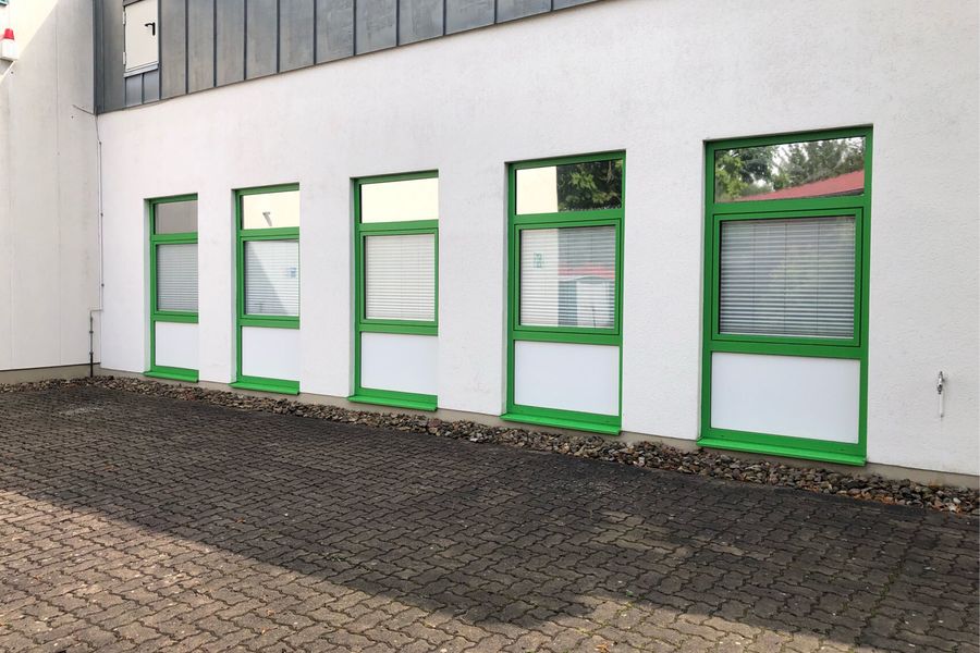 In Sarstedt haben wir alle vorher türkisfarbenen Fenster- und Rahmenelemente in Apfelgrün geändert. Durch Fassadenfolie in seidenmatter Optik konnten Fassadenbereiche (Fenster und Fensterbänke) und Innenelemente im Firmenfarbton neu gestaltet werden. Auch die Küche bekam eine optische Aufwertung im identischen Grünton und frischem weiß.