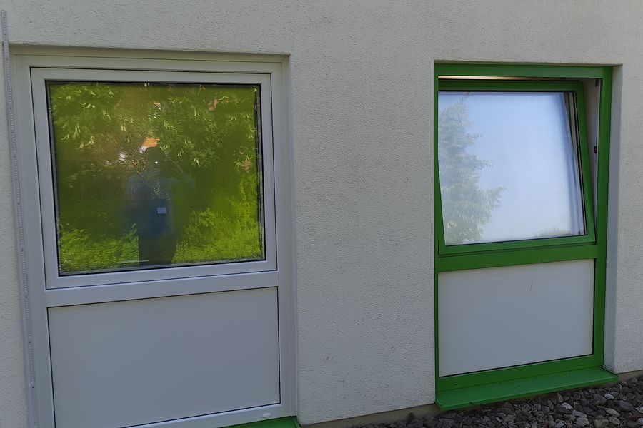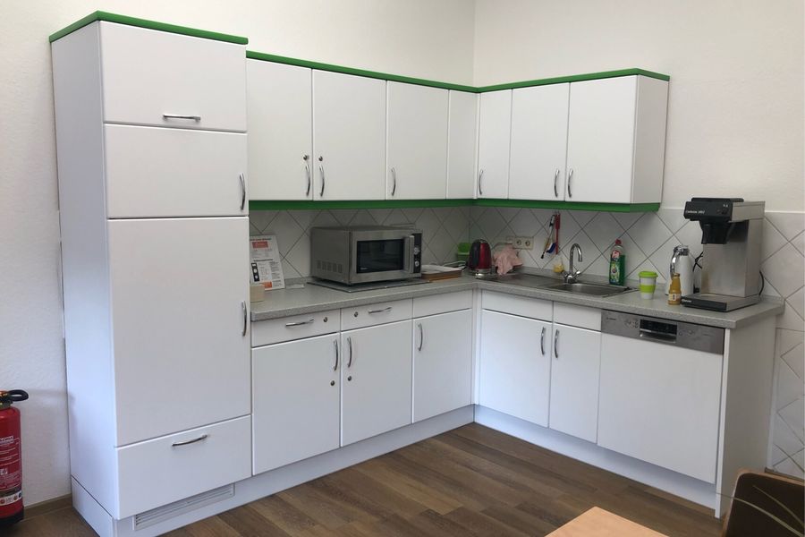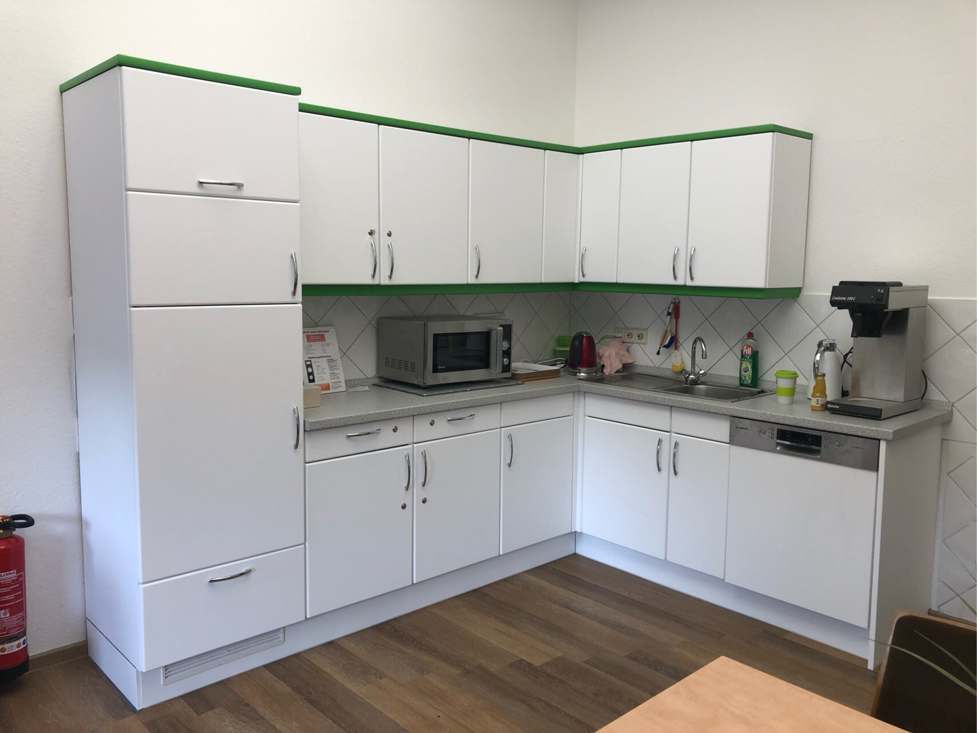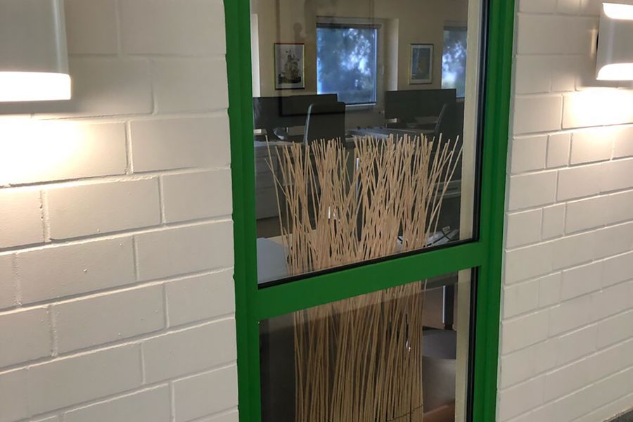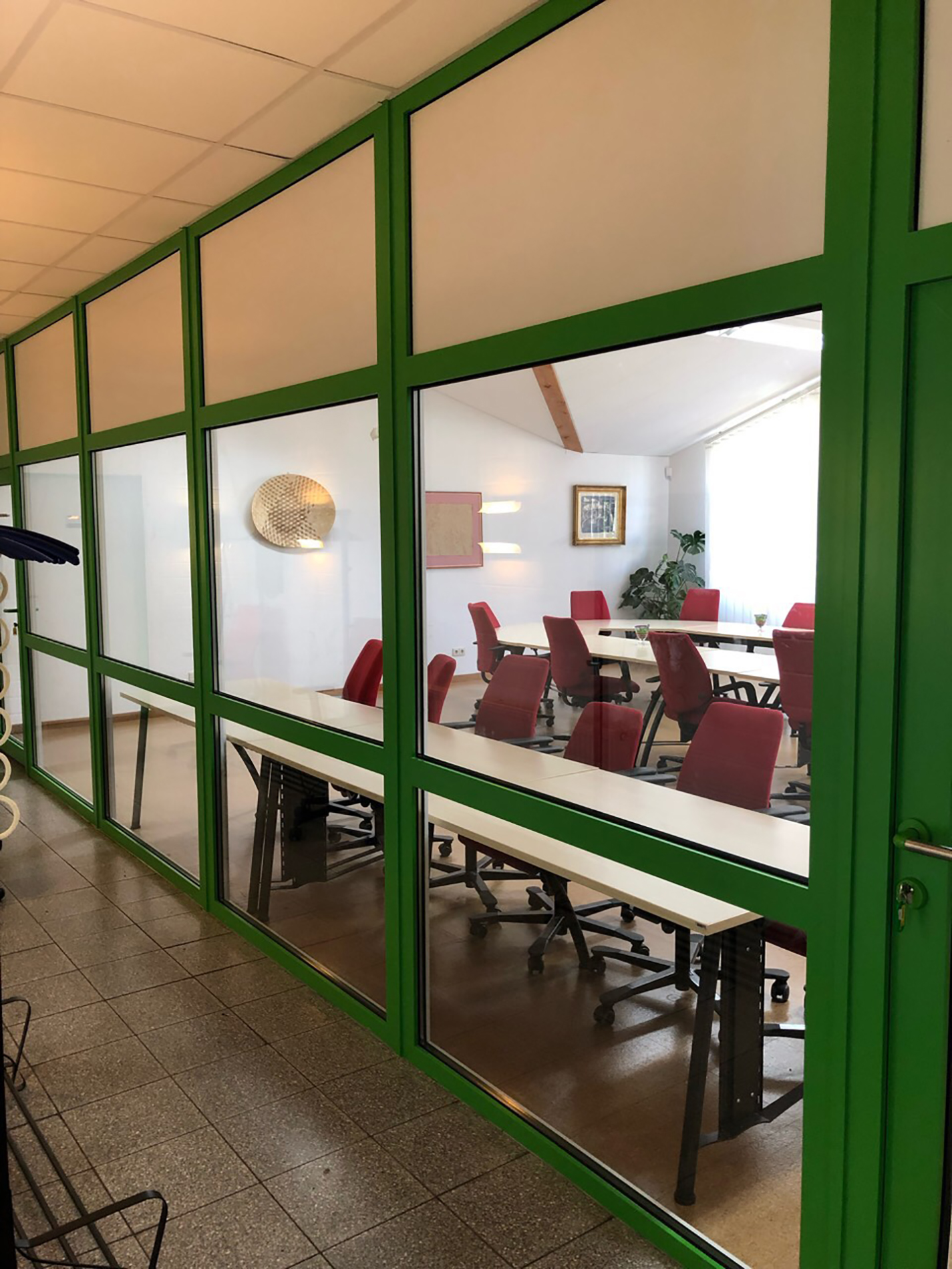 In Sarstedt haben wir alle vorher türkisfarbenen Fenster- und Rahmenelemente in Apfelgrün geändert. Durch Fassadenfolie in seidenmatter Optik konnten Fassadenbereiche (Fenster und Fensterbänke) und Innenelemente im Firmenfarbton neu gestaltet werden. Auch die Küche bekam eine optische Aufwertung im identischen Grünton und frischem weiß.